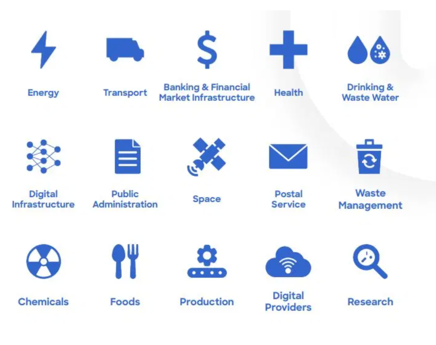 Si votre organisation appartient à l’une des catégories répertoriées ci-dessous, NIS2 s’applique à vous. Dans ce cas, nous vous recommandons de vous familiariser avec les enjeux de cybersécurité spécifiques au secteur grâce aux liens fournis, ainsi qu'avec les exigences générales NIS2.